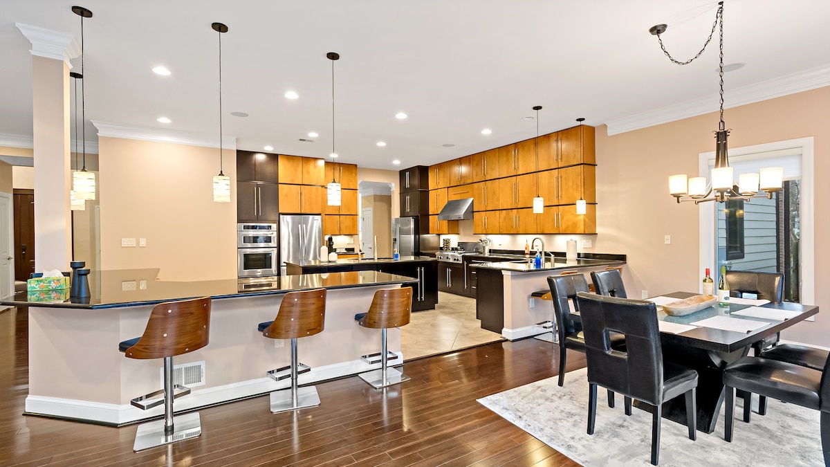 ¡RARO ENCUENTRO! Dormitorio y baño en el nivel principal sin escalones. ¡Bienvenido a su elegante refugio en D.C.! Esta casa de 5 dormitorios y 4 baños, totalmente renovada, ofrece 325 metros cuadrados de espacio abierto, a solo 3 minutos del metro y a 10 minutos de la Casa Blanca. Disfruta del estacionamiento gratuito en la calle. Perfecto para familias o viajeros de negocios, con un dormitorio en la planta principal, cocina de chef, salas de estar dobles, wifi rápido y televisores inteligentes. Reserva tu estancia hoy y vive D.C. con comodidad y estilo.