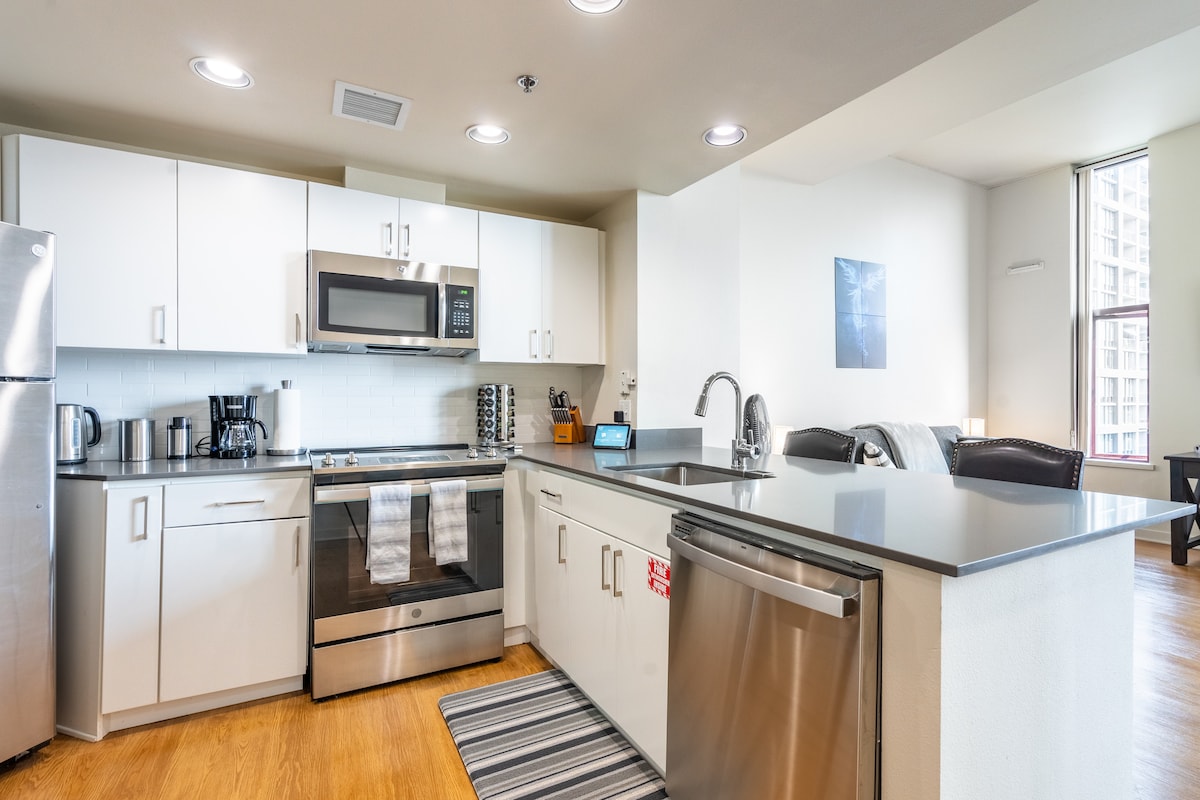 Disfruta de la experiencia de Seattle de tus sueños con tu propio apartamento privado ubicado a una manzana del mercado de Pike Place. Comodidad en su máxima expresión, con Target ubicado justo debajo, tu propia plaza de aparcamiento y un montón de excelentes restaurantes y tiendas a un par de manzanas de distancia. Y si alguna vez te sientes cansado de todas las compras y comidas, el paseo marítimo está justo enfrente. Aún mejor, el sistema de metro público también está a solo 1 manzana de distancia para cuando quieras explorar otras partes de Seattle.