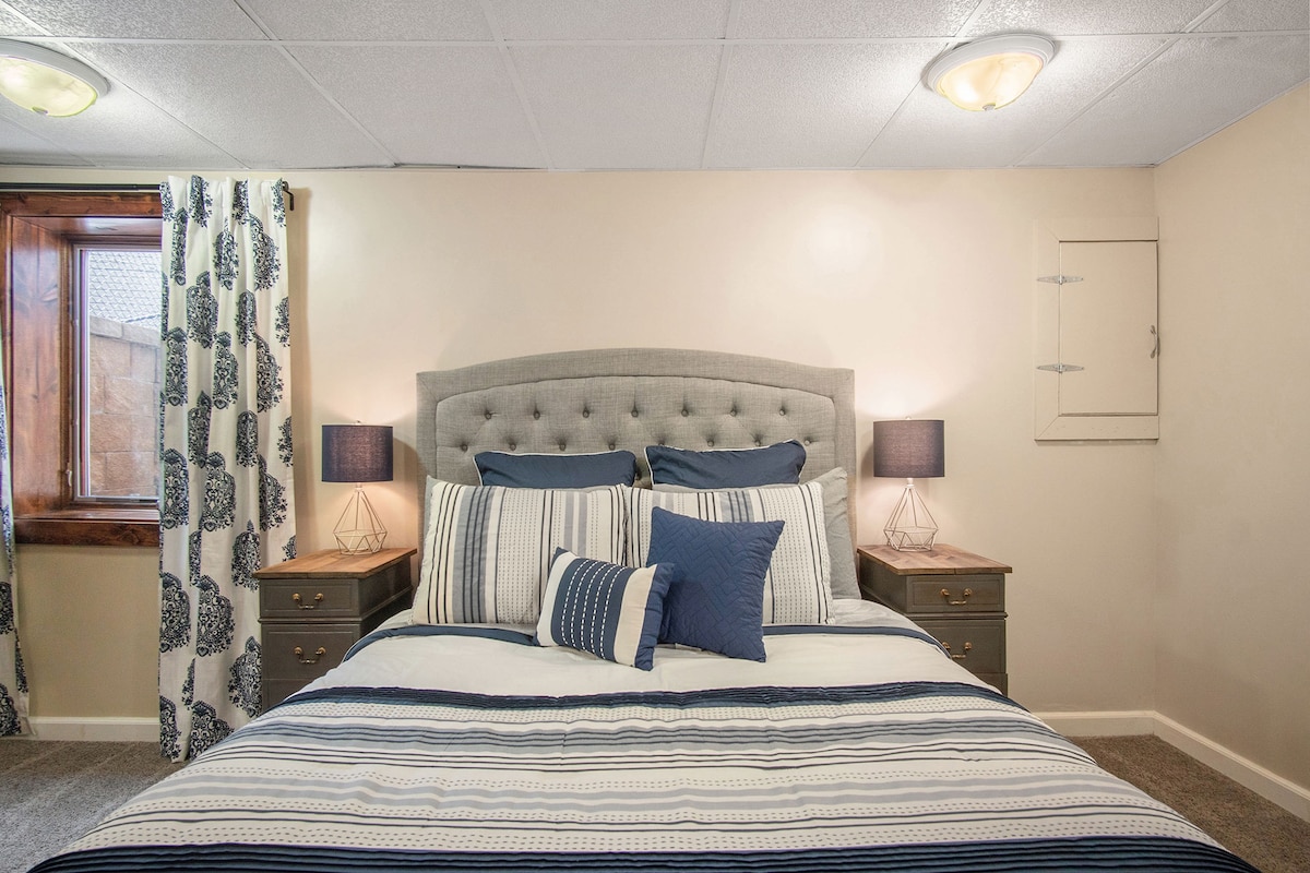 Step into a private and cozy space. Relax watching TV in bed or on the couch. This place is part of our walk out basement, so you may hear day to day living upstairs. For your safety there is a Ring camera installed at the entrance and will light up the entryway when it’s dark. Parking is on the well lit public street. Easily walk up our dedicated Airbnb sidewalk, no steps, walk around to the back of the house. You’ll be in a serene space that makes you feel right at home.