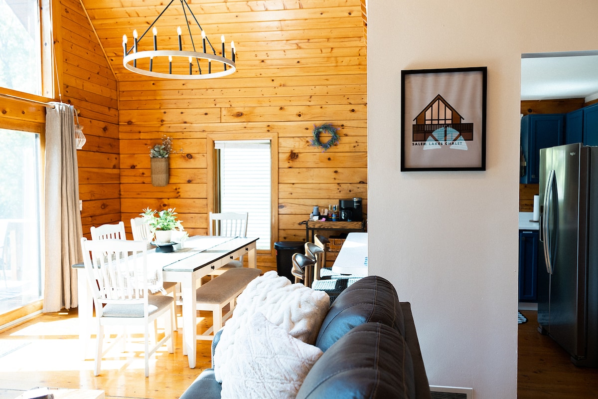Experimenta el encanto de Salem Lakes Chalet, con comodidades modernas ubicadas en una pintoresca cabaña de madera de 3 pisos. Relájate en un patio cercado que ofrece vistas pintorescas de bosques y disfruta de la variedad de lagos cercanos. Disfruta del ambiente norte sin el largo viaje, ¡asomado por nuestra amplia pared de ventanas! Ya sea que estés en la ciudad para visitar a la familia o busques una recuperación de la ciudad, estamos convenientemente ubicados a 10 minutos de la I-94. Presentado por NCL Properties.