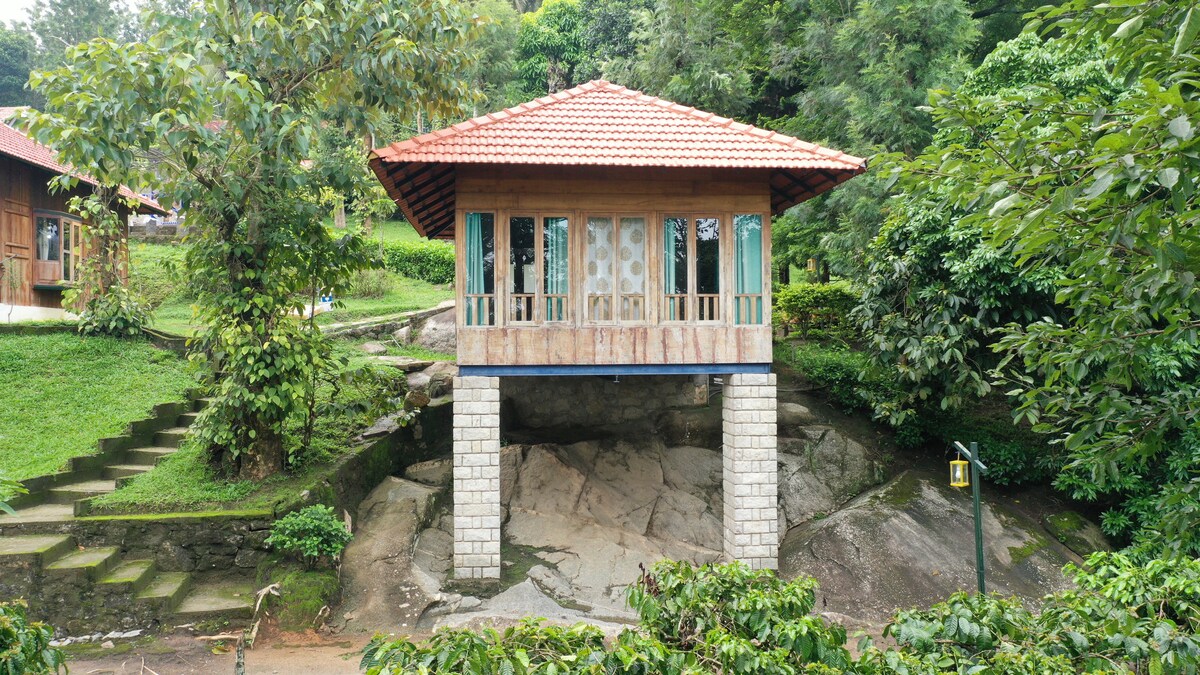 Escape to a serene Wayanad retreat with beautifully crafted honeymoon cottages, perfect for a romantic getaway. Ideal for couples, families, and groups, this peaceful, nature-surrounded stay offers comfort, privacy, and scenic views—create unforgettable memories in a calm, relaxing atmosphere. ★ Surrounded by Large coffee plantations ★ Swimming pool ★ In house restaurant. ★ Watch tower ★ Kids Play Area ★ Pedal Boating ★ Outdoor Activities ★ Coffee plantation walk ★ AC premium rooms