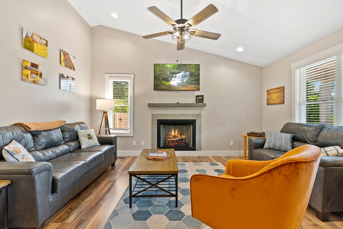 ¡Vuelve a Carolina del Norte! Esta elegante cabaña, a poca distancia en coche de Waynesville, Carolina del Norte, es tu refugio ideal para explorar todo el oeste de Carolina del Norte y a poca distancia en auto de Asheville. Con un concepto abierto, cuatro dormitorios, una chimenea y una habitación adicional con una mesa de billar, hay un amplio espacio para relajarse y divertirse. Rejuvenece en el jacuzzi, cena al aire libre con la nueva parrilla o reúnete alrededor de la chimenea. ¡Tu escapada perfecta te espera!