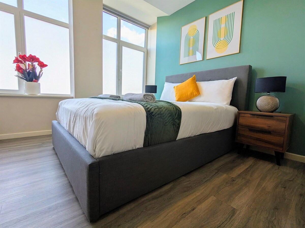 ¡Bienvenido a tu elegante hogar lejos de casa en Manchester! Este moderno y espacioso apartamento de 2 dormitorios + 1 salón ofrece la base perfecta para familias, viajeros de negocios o grupos que exploran la ciudad. Este lugar es un apartamento de dos dormitorios situado muy cerca de Media City, Salford Quays y el estadio de fútbol del Manchester United. Este es un alojamiento ideal para parejas, trabajadores y viajeros. Hay plazas de aparcamiento gratuitas cerca del edificio en la calle, a solo 2-3 minutos a pie.