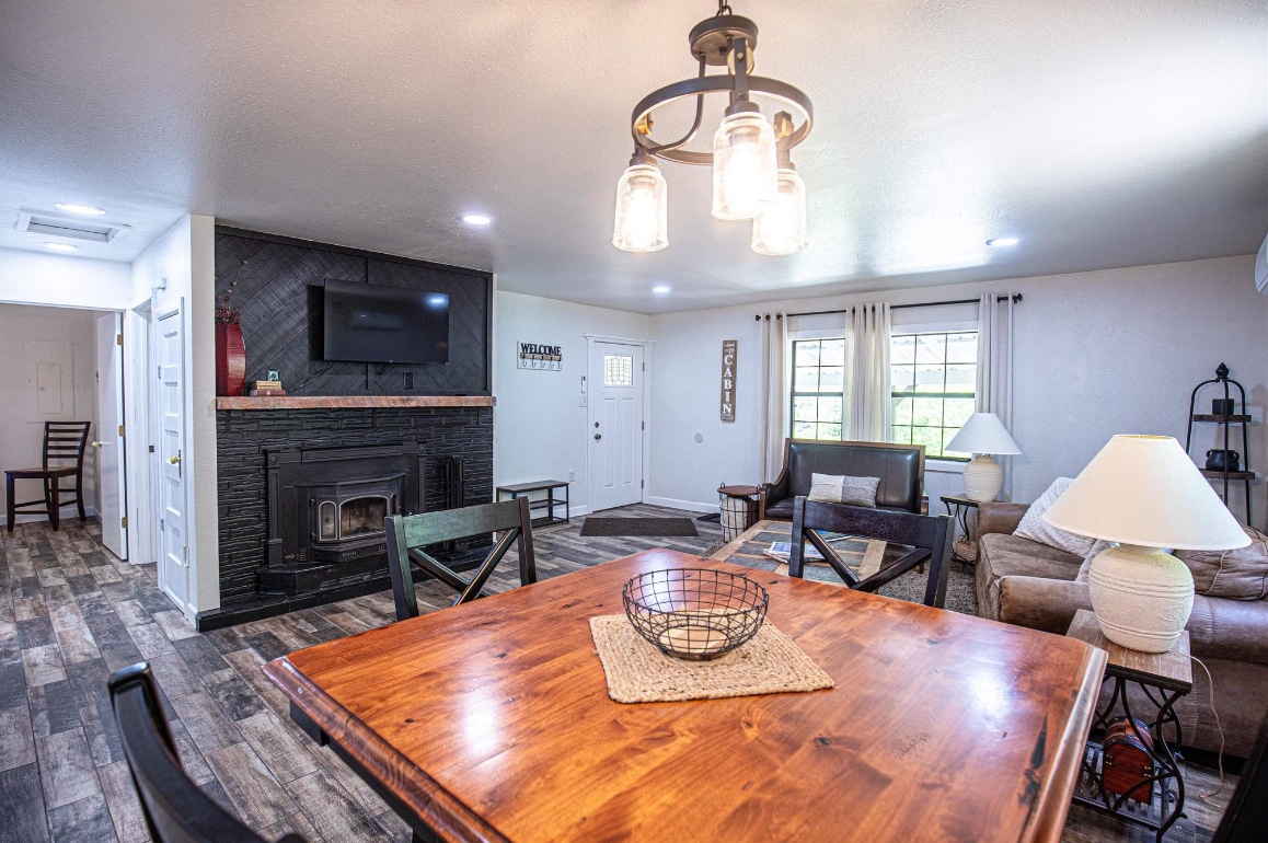 ¡Vuelve a un lugar y una hora más sencillos! Nuestra cabaña está en un vecindario tranquilo en un lote de un cuarto de acre. Remodelado para la comodidad y el disfrute, ¡pero todavía tiene ese encanto rústico para darte la escapada perfecta a la montaña! Disfruta de una gran noche de sueño en nuestro King Serta Perfect Sleeper. Mientras que los huéspedes adicionales eligen entre el sofá cama doble de espuma viscoelástica XL. Nuestra cocina está totalmente equipada para que cocines tus propias comidas, ¡y tenemos muchos juegos para mantenerte ocupado!