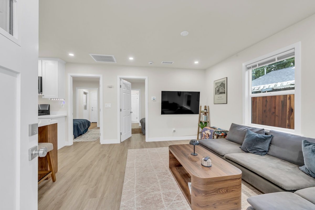 ¡Da la bienvenida a nuestra pequeña vivienda situada cerca de Downtown Riverwalk! Este acogedor refugio cuenta con 1 dormitorio/ 1 baño, una cocina totalmente equipada, electrodomésticos de primer nivel que incluyen lavadora/secadora Miele y espacio de oficina dedicado. ¡Disfruta de tu paseo hasta el Puente de la Torre y el Viejo Sacramento, con el Capitolio de California a solo 1,5 millas de distancia! ¡Ven a experimentar la combinación perfecta de comodidad, conveniencia y proximidad a las principales atracciones de Sacramento!