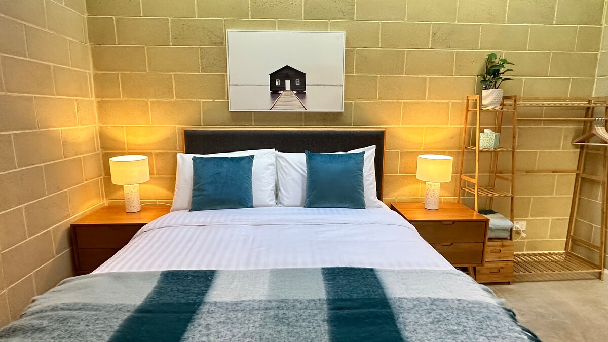 ¡Ideal para escapadas en pareja con absolutamente todo lo que necesitas para una estancia perfecta en Margaret River! Estudio de un dormitorio renovado, moderno y espacioso. Situado en el corazón de la región de Margaret River, ¡justo al final del camino del mercado de agricultores! Te encantará la lujosa cama tamaño king, los muebles de calidad, el baño luminoso y moderno, la sala de estar con cocina de planta abierta llena de luz y el patio privado con jardín de bambú frondoso y barbacoa. Acceso a todo el estudio, patio privado y aparcamiento gratuito.