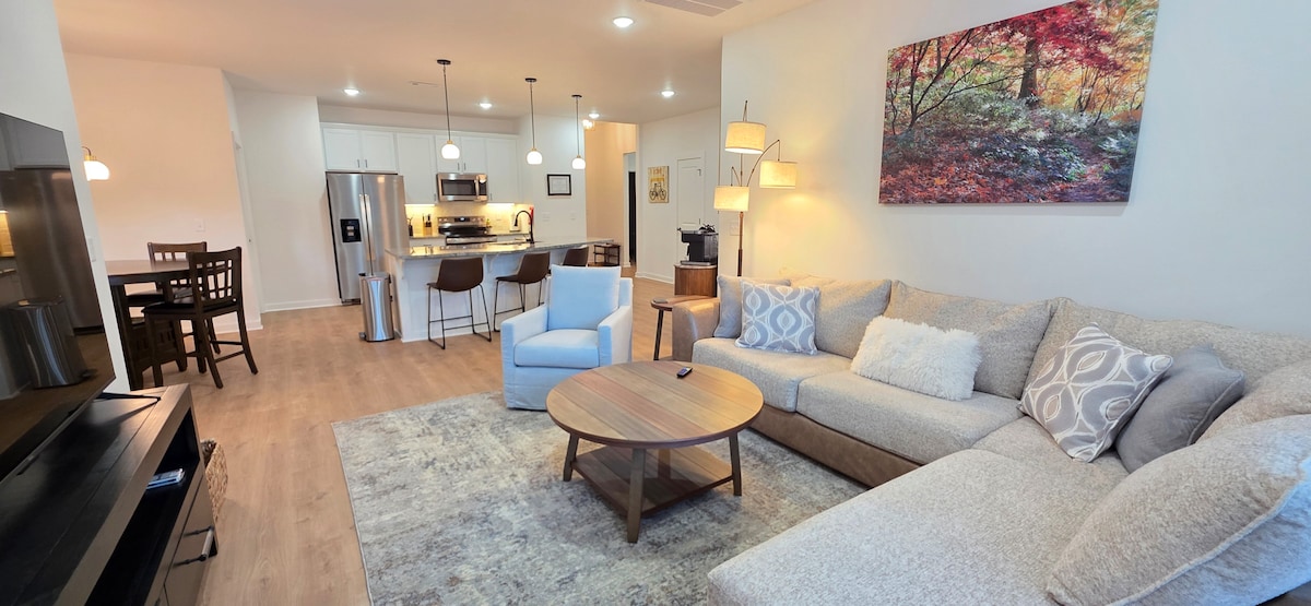 Blue Ridge Vista offers modern mountain luxury with epic views, cozy spaces, and endless ways to unwind. Soak in the hot tub, grill out on the deck, gather by the fire pit, or play a round of cornhole. Inside, enjoy an open-concept layout, stylish living spaces, a game room, and three cozy bedrooms. A gourmet kitchen, EV charger, and thoughtful extras make everything easy. Downtown Blue Ridge, wineries, hiking, and lakes are just minutes away for more adventure.