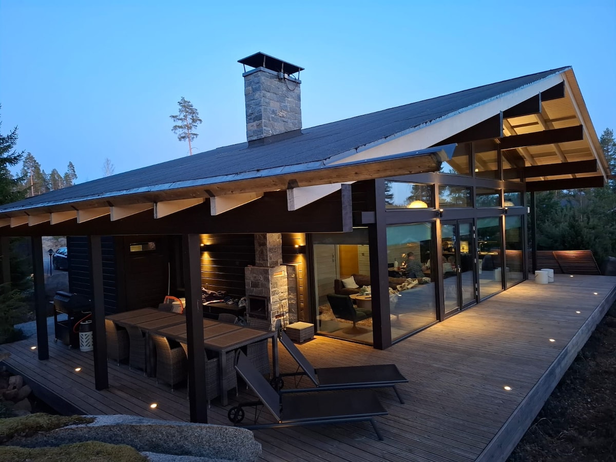 Spacious and luxurious private home designed for relaxing stays. Enjoy your own heated swimming pool, bathtub, indoor & outdoor saunas, multiple terraces, and a 65 m² open living room + kitchen ideal for retreats or gatherings. Generous space inside and out makes it perfect for couples or groups. Whether unwinding by the pool, soaking in the bathtub, enjoying a traditional Finnish sauna, or spending long evenings on the terraces, this home offers privacy, comfort, and a truly unique stay.