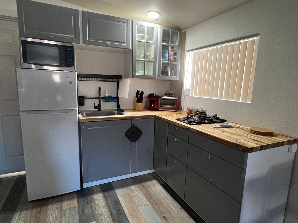¡Disfruta de esta elegante casa de huéspedes con entrada privada cerca de Olde Town Arvada! Amplio estudio con cama tamaño king, sofá futón, cocina con vitrocerámica, televisión inteligente y baño completo. Fácil acceso a la I-70 para llegar al centro de Denver y a las montañas. A 5 minutos en coche o a 30 minutos a pie de Olde Town Arvada con un montón de restaurantes, bares y tiendas. La casa de huéspedes es un edificio separado detrás de nuestra casa principal. Está unida a nuestro garaje.