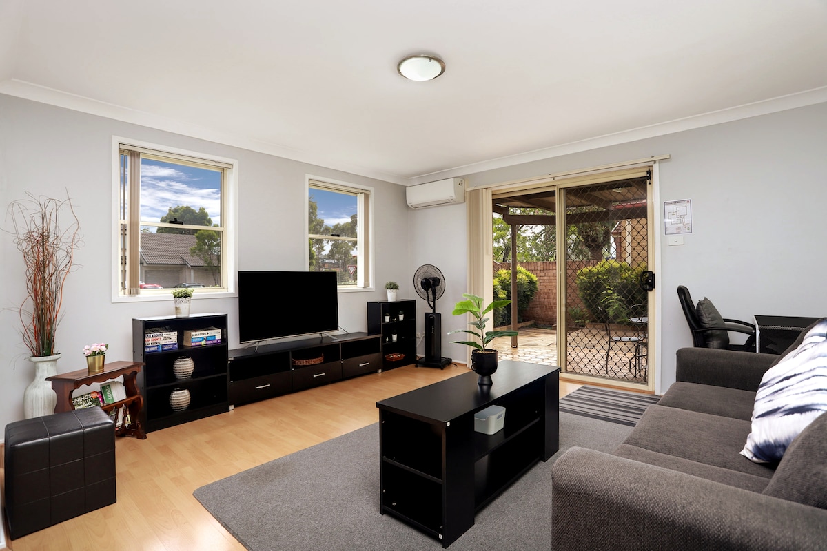 This beautiful house is recently renovated with 3 bedroom & 2 bathroom at tranquil street. Conveniently located & easy access to public transport & restaurant Fully set up for long or short stay. Well equipped kitchen, 58" smart TV, free coffee & tea, laundry facility, spacious outdoor space allow you to enjoy in this gorgeous home ★Great Location★ Drive to station (1 min) Westfield (3 min) Sydney Zoo (8 min) Hwy (3 min) M4 & M7 ( 8 min) Blue Mountain (1 hr) Sydney Airport (45min)