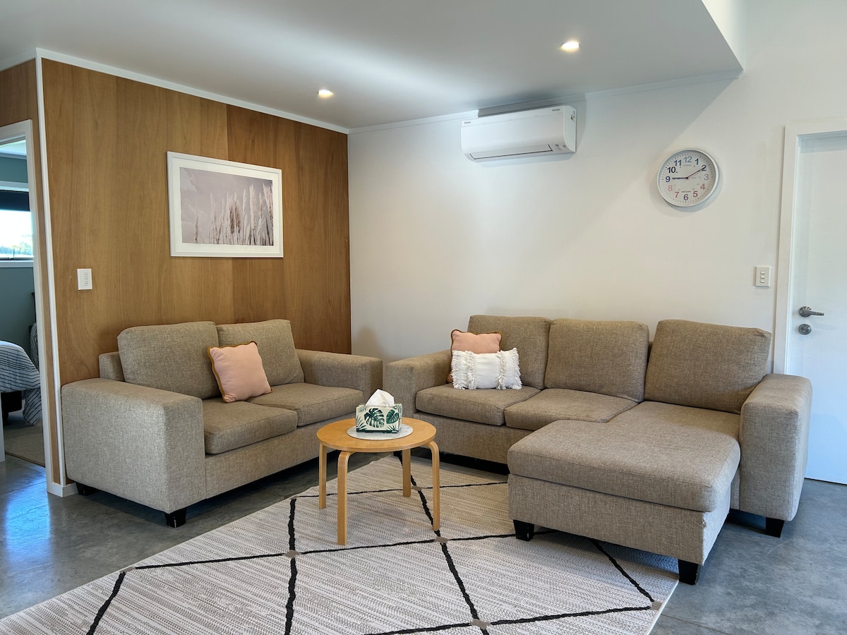 ¡Ven y quédate en nuestra impresionante y soleada casa de huéspedes en Mangawhai Heads! ¡A solo 15 minutos a pie de la playa del estuario, de las tiendas de Wood Street y a 30 minutos a pie de la popular playa de surf! Te encantará alojarte aquí, el apartamento tiene grandes puertas correderas apilables triples orientadas al norte que puedes dejar abiertas para disfrutar del sol todo el día. Incluso en invierno te sentirás como si estuvieras en pleno verano. ¡También disfrutarás de increíbles vistas de los Brynderwyns y frutas frescas de nuestro jardín (en temporada)!
