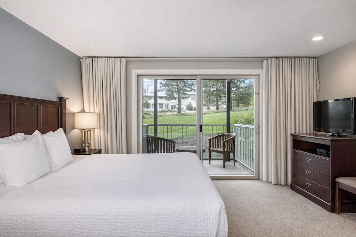 Acogedora habitación King con balcón y vistas al agua y a la ladera
