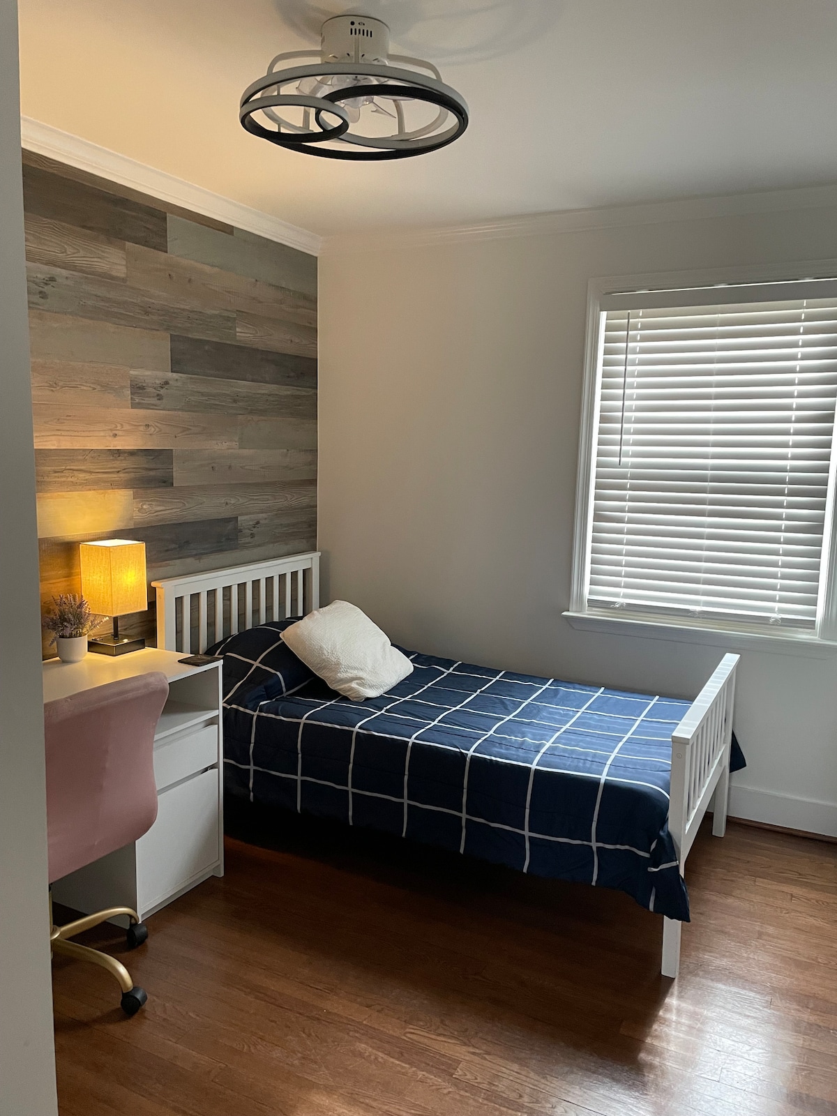 I'm pleased to share my latest design after a two year renovation project! This finished basement has been totally renovated and designed with lots of great amenities! It features secure parking, a private entrance, brand new kitchenette area and private bathroom, dedicated workspace, LOTS of windows for natural lighting, a blackout curtain in the bedroom, and the entire ceiling has been soundproofed! Extra soundproofing has been used in the bedroom for added comfort and enjoyment!