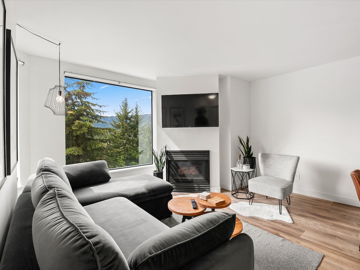 Imagínate en nuestro encantador ático, enclavado en el corazón del pueblo. Las ventanas de 12 pies bañan el espacio con la cálida luz del sol del sur, te sentirás como si estuvieras en un acogedor santuario. Camina hasta los remontes, restaurantes y bares, todo mientras disfrutas de paz y tranquilidad. Después de un emocionante día en la montaña, relájate junto al fuego con una copa de vino y tu programa favorito en la pantalla grande. Además, disfruta de APARCAMIENTO GRATUITO durante toda tu estancia. No te lo pierdas. ¡Reserva ahora para vivir una experiencia excepcional en Whistler!