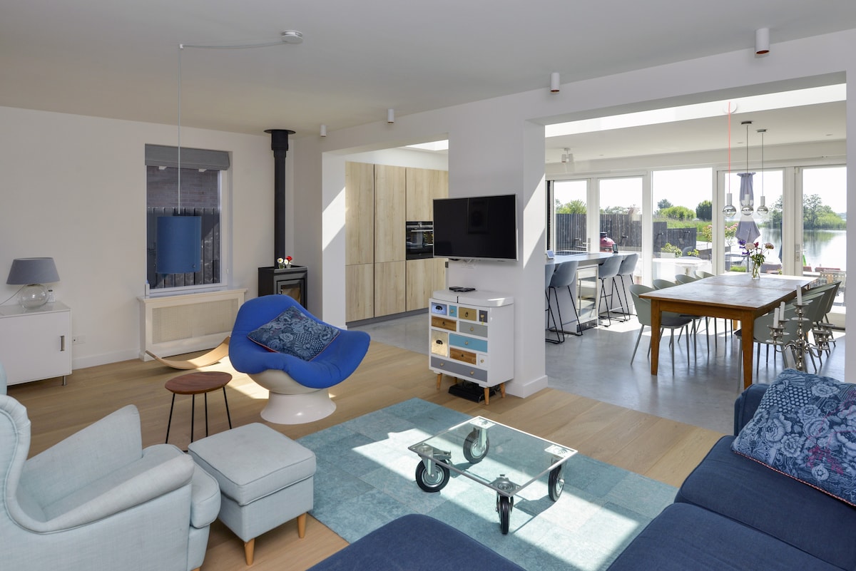 Nuestra increíble casa del lago holandés en un pueblo tranquilo a 15 km de Ámsterdam está perfectamente situada para una estancia en la naturaleza, con un gran jardín con vistas al agua y mucho para atraer a las familias que viajan. Es un lugar relajante para alojarse (nadar, surf de remo, navegar directamente desde el jardín) con las ciudades de Ámsterdam y Utrecht justo alrededor de la esquina. El lago se puede explorar en barco, llevándote a pequeñas playas, mientras que el pueblo y el vecindario se pueden explorar con bicicletas (electrónicas) proporcionadas por el propietario.