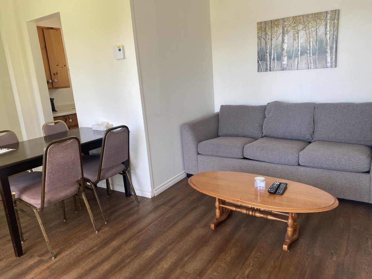 Peaceful, all-season paradise in cottage country. Welcome to our rustic-chic 2-bedroom waterfront guest suite with private entrance, tucked into a natural forested hillside overlooking a tranquil lake with calm, sparkling waters. A private guest dock with sun exposure — perfect for lounging, swimming, or sipping drinks. Complimentary use of a two-person kayak, stand-up paddleboard, and life vests to explore the lake at your leisure. parking for 2 cars (The upper bunk is not suitable for adults.)