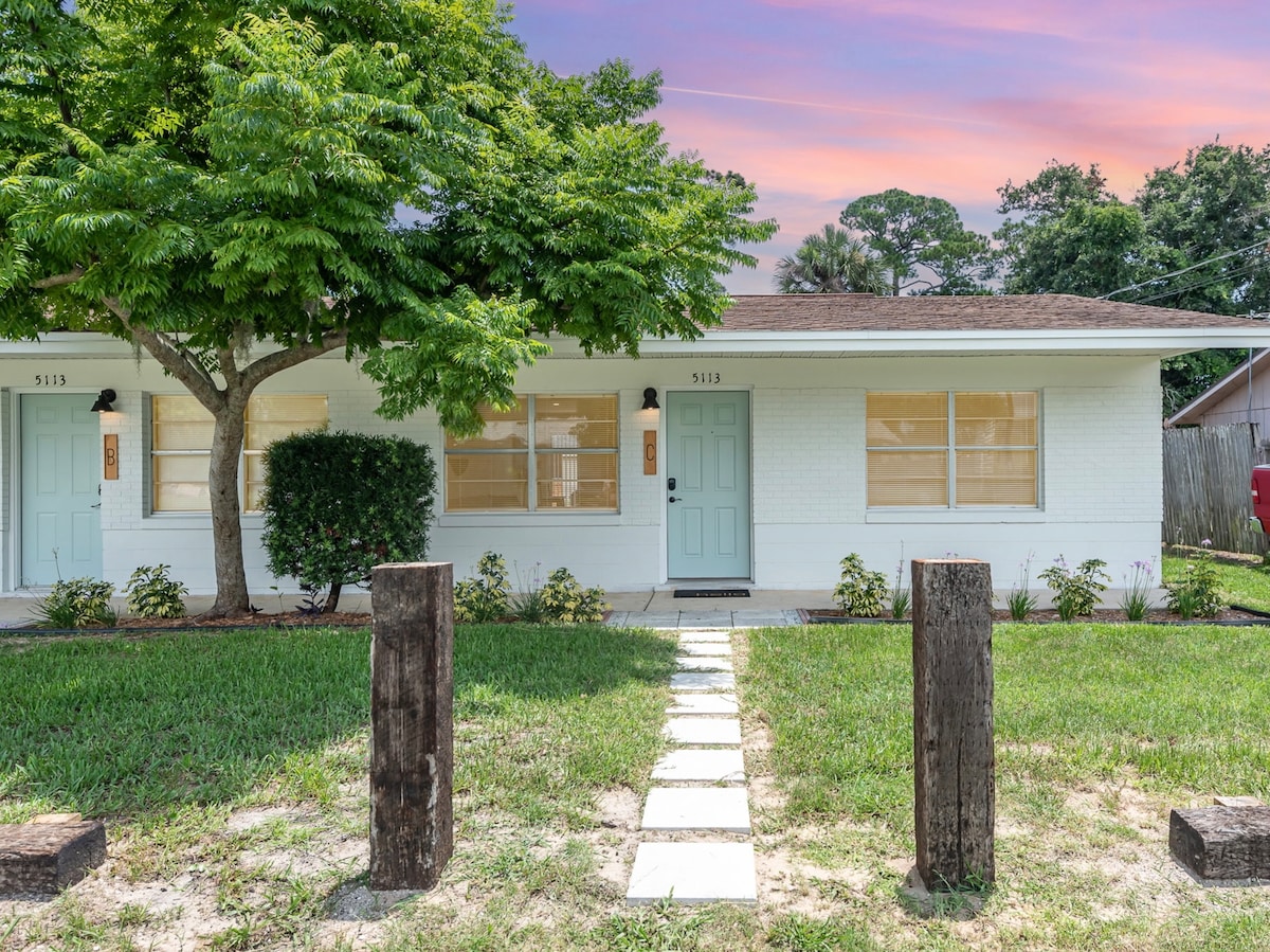¡Hay algo romántico y tranquilo en el agua! ¡Hay mucho de eso en Daytona Delight! ¡Estás a 6 minutos de la playa y a pocos pasos de tu propia piscina personal! Hemos creado un hermoso y espacioso apartamento/suite con cerradura con entrada privada, ¡tu propia piscina privada y terraza de piscina! Baño personal, zona de café con una Keurig, nevera, tostadora y microondas. ¡Está superlimpio! No hay espacio compartido y se encuentra en un barrio seguro y tranquilo. ¡Este es el oasis tropical romántico perfecto!