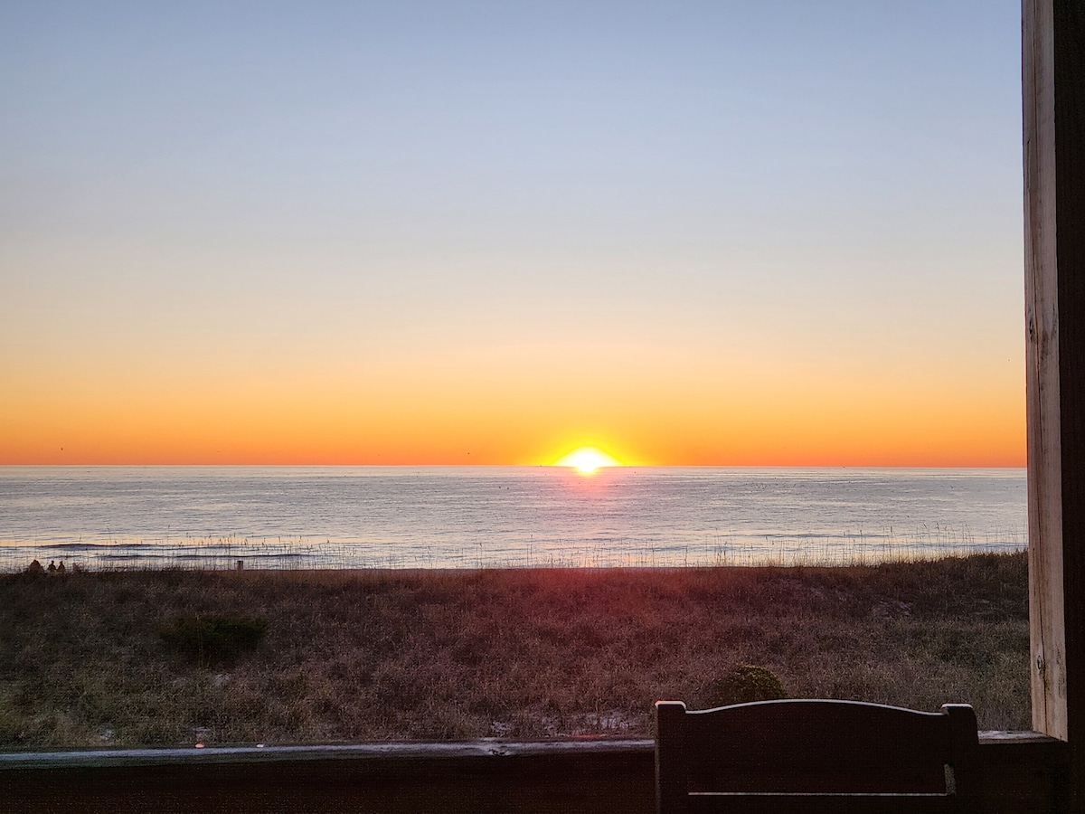 ¡Bienvenido a Surfs Edge Villas! Este apartamento luminoso e íntimo ofrece increíbles vistas panorámicas al mar. El refugio personal frente al mar, perfectamente ubicado en Carolina Beach, a pocos pasos del animado centro de la ciudad, ofrece un estilo de vida costero relajado con acceso privado y fácil a la arena, el surf y el estacionamiento. ¡Escapada acogedora, pintoresca, limpia y personal frente al mar! Relájate en el balcón y observa los cambios en el océano a cualquier hora. Relájate en las zonas abiertas de salón/comedor/cocina Todas con vistas al mar