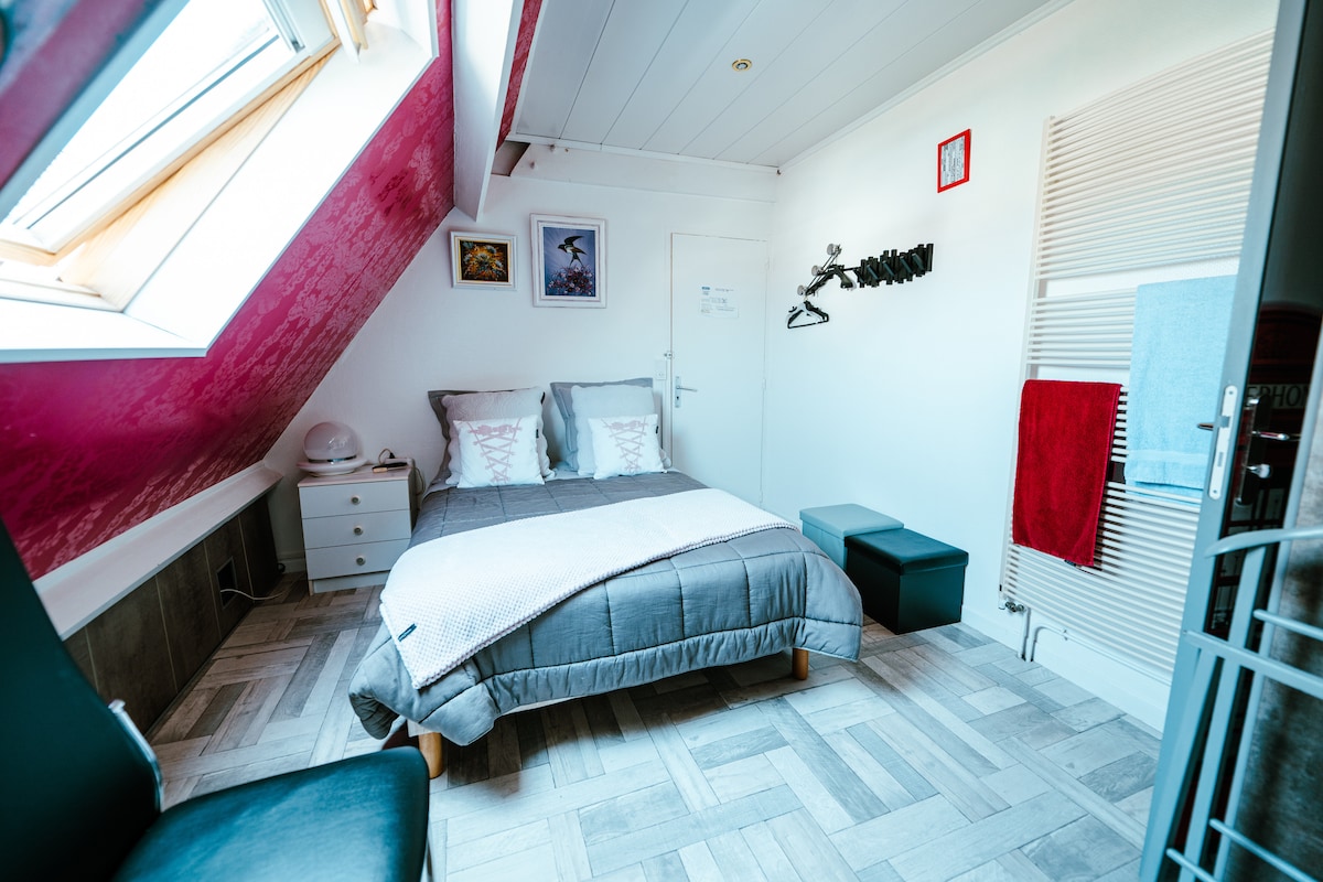 Un paréntesis de dulzura, un deseo de descubrir nuestra hermosa costa de Ópalo. Le damos la bienvenida, junto con Susie, nuestro bichón, a nuestra casa. La habitación se encuentra arriba, con baño y aseo privado (esto permite una total autonomía e independencia con respecto a los ocupantes de la casa), una televisión, una cama de 160x200, ropa de cama de calidad (Descamps) y una bandeja de cortesía. Desayuno continental (Pan, brioche, pastel, mermelada, yogur está hecho en casa) incluido
