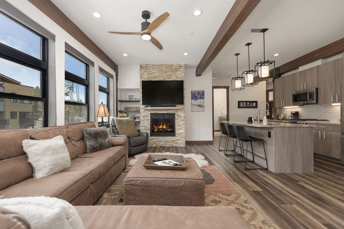 NUEVO y contemporáneo apartamento de 2 dormitorios y 1 baño cerca de la estación de esquí Winter Park con jacuzzi privado en la ruta de transporte GRATUITO. Apartamento de montaña de moda recién construido con más de 40 000 dólares en mejoras y con terraza privada. A solo 2 millas de la estación de esquí Winter Park. ¡NO ES UNA CASA PARA FIESTAS! NO SE PUEDE USAR EL JACUZZI DESPUÉS de las 22:00 h. Ten en cuenta que, en caso de daños, se cobrará el depósito. Cerca de restaurantes y tiendas ubicados tanto en Fraser como en Winter Park. **Asegúrate de consultar el sitio web del centro vacacional para conocer las últimas novedades sobre esquí y eventos en Winter Park**