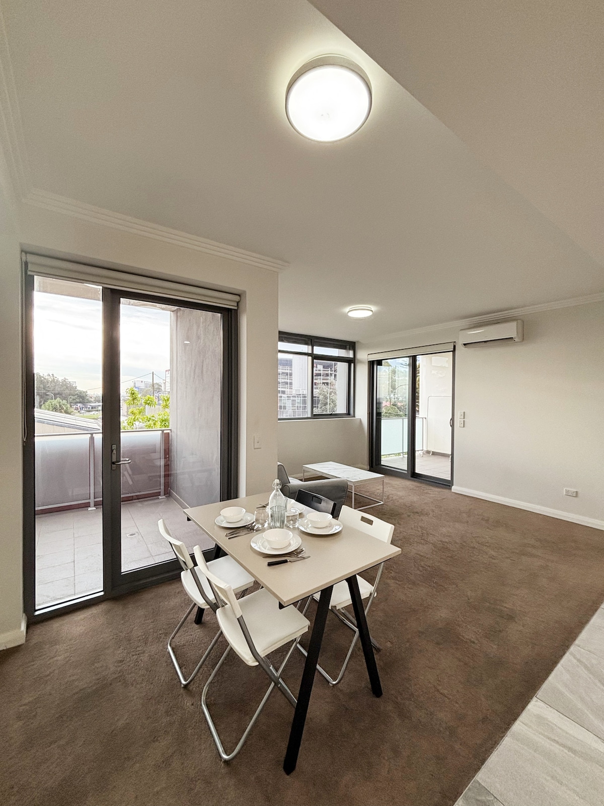 ⭐️ Bright East-facing Scandinavian-inspired apartment with morning Sun, a warm and cozy space during cooler months. Walk to Liverpool Hospital 🏥, trains 🚆 & Westfield 🛍️. Easy access to Olympic Park, Accor Stadium & Sydney CBD, ideal for events, business or family stays. What you’ll love: • 2 comfortable bedrooms & fast Wi-Fi 🛜 • Sun-filled balcony & large living room windows • A/C in living area & master bedroom (heater available for all rooms) • Secured building, lift & FREE parking🅿️