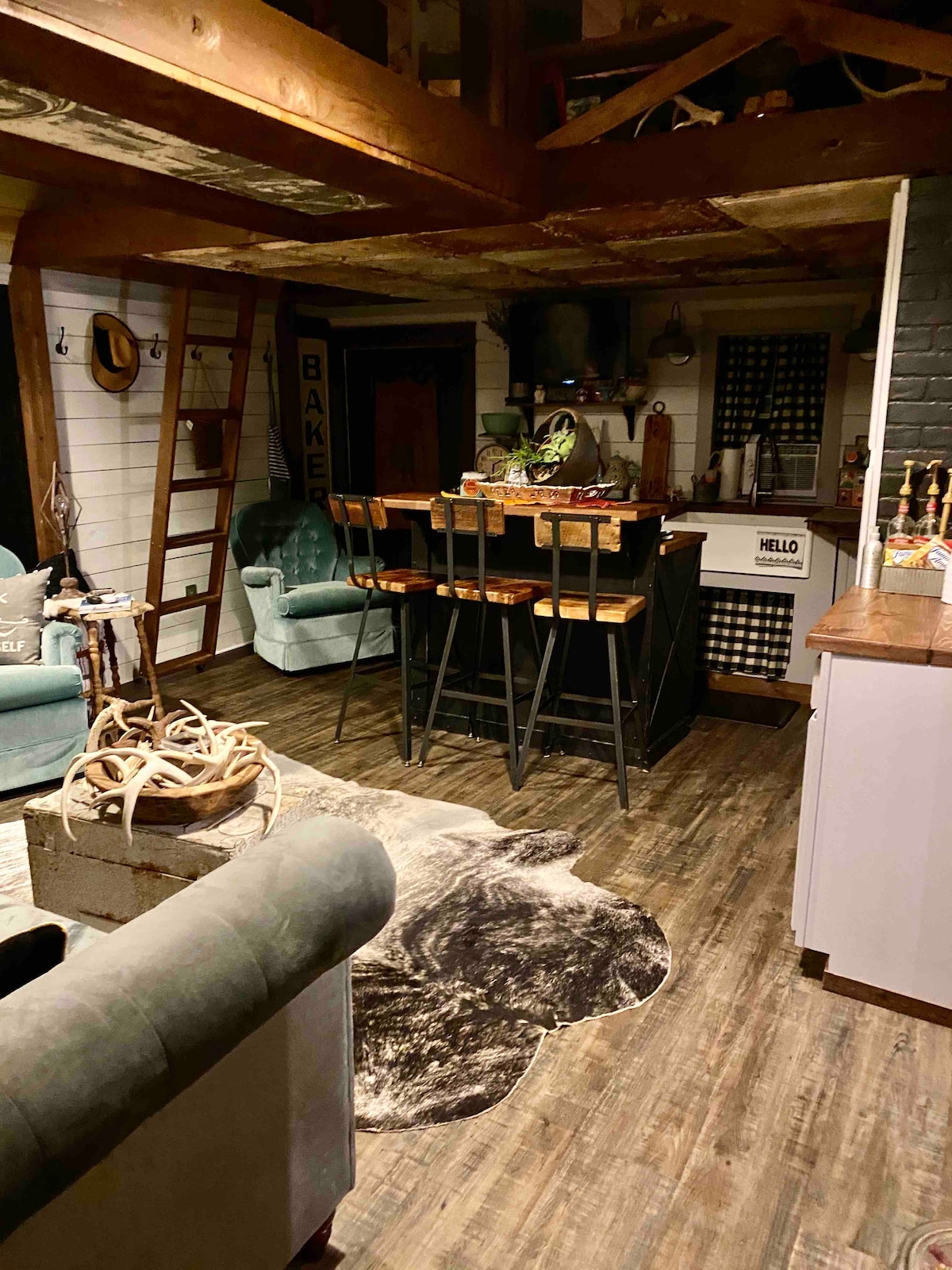 1 cama tamaño queen y 1 cama individual en 1 habitación 1 cama individual 1 sofá cama plegable completo en la sala de estar 1 cama tamaño queen y para niños pequeños en loft (más para niños) Opciones de cocina Horno tostador con plancha, olla de cocción, freidora de aire y 2 quemadores, microondas, tostadora y parrilla exterior. Gran baño Espacio de entretenimiento cubierto al aire libre Área de juegos para niños y casa de juegos interior (el área de juegos es para los huéspedes) Lugar para hacer fogata Es un entorno de país Hay un tren no muy lejos que a veces se pueda escuchar. Tapones para los oídos proporcionados 🚂