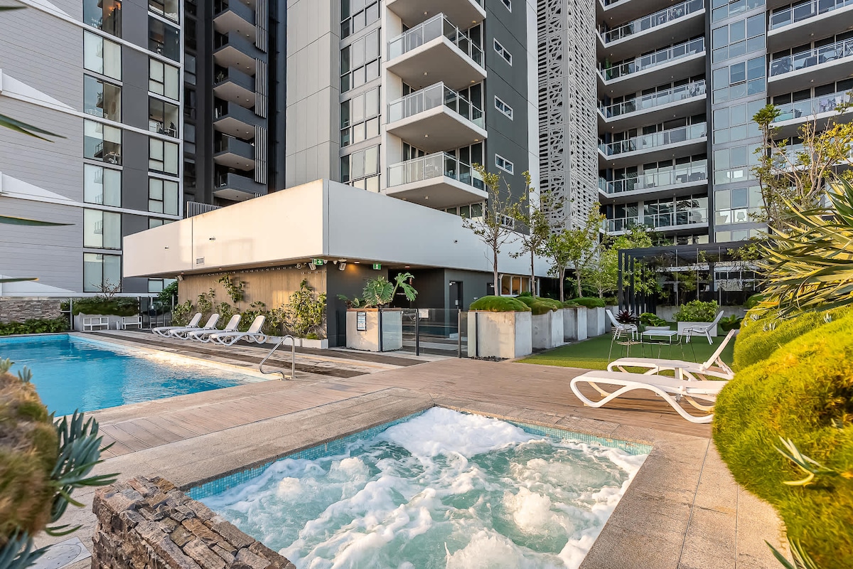 Haz las maletas... ¡esto es todo! Nuestro apartamento de estilo ejecutivo en el último piso ofrece lo último en estilo de vida y ubicación. Con sede en el sur de Brisbane, estás a pocos pasos de Southbank, con su vasta variedad de restaurantes, bares, cafés, supermercados, transporte público y a 1 km de la ciudad... también puedes estacionar tus coches de forma segura y dejarlos atrás... Date un chapuzón en la piscina, reserva un lugar en la barbacoa o simplemente siéntate y disfruta de las vistas desde arriba :)