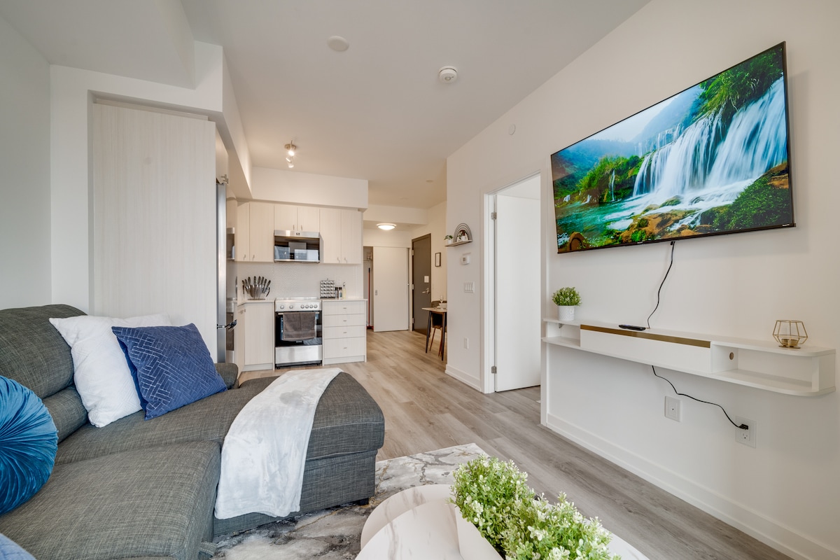 Elevate your stay in this stylish one-bedroom condo sleeping up to 4 guests, where modern comfort meets stunning city views. Designed for both work and relaxation, the open-concept layout features a modern bedroom, a sleek bathroom, and a comfortable sofa bed in the living—ideal for couples, business travelers, or short city getaways. Wake up to skyline views, unwind after a busy day, and enjoy a seamless urban stay that feels welcoming, effortless, and truly like home. Book your stay today!