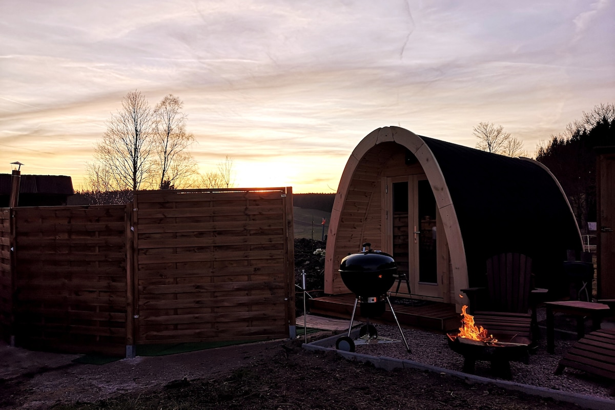 El Fichtel-POD es una cabaña de madera tipo iglú. El lugar es ideal para aquellos que les gusta tenerlo fácil, pero no quieren renunciar a la comodidad. Como punto culminante especial, hay una bañera de hidromasaje con sistema de burbujas e iluminación submarina con acceso directo junto a la CÁPSULA (recargo de 99 euros por una tarde/noche y cada día adicional de 69 euros). Además, se puede reservar un barril de sauna que se dispara con madera. (59 euros por 3 horas y solo para ti:) ).