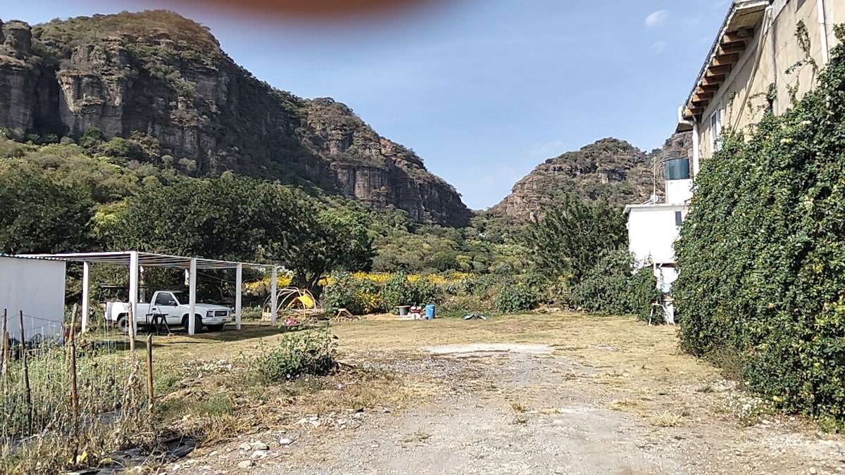 Lugar único donde gozarás de una PRIVACIDAD total para ti y tus invitados, a 10 min aprox. del centro del Pueblo Mágico de Tlayacapan, Mor. Contamos con área de fogata, 5 Baños completos, Sky Alberca de 1.80m de profundidad a desnivel terminando con chapoteadero y amplia capacidad, 2 habitaciones dobles 2 habitaciones sencillas, Durante su estancia se incluye una cómoda cabaña en donde podrán encontrar lo necesario en utensilios para la elaboración de sus alimentos, TV y Sky.
