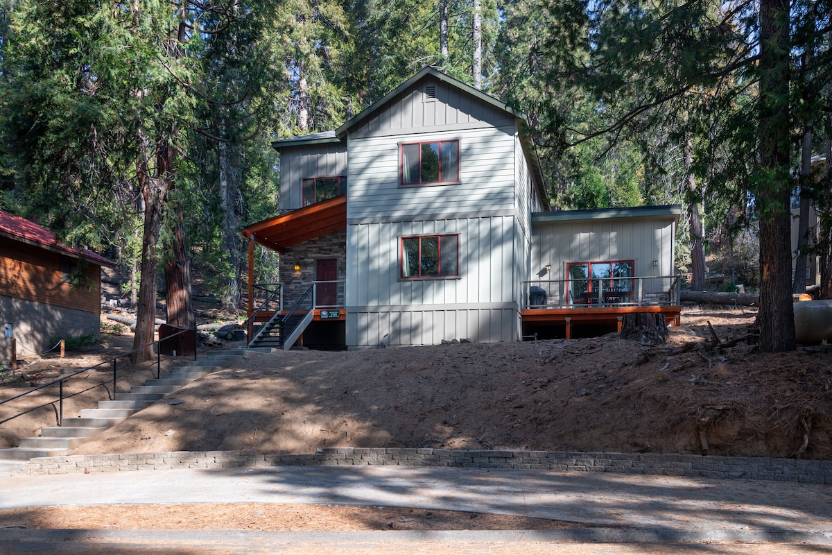 Esta nueva casa se encuentra dentro de las puertas del parque, a poca distancia en coche del valle de Yosemite. No es necesario reservar el parque. Esta elegante casa cuenta con techos abovedados, amplias ventanas que proporcionan mucha luz natural y una planta abierta con electrodomésticos y acabados de alta gama. La casa está llena de madera fresada a medida de este sitio, desde los armarios hasta los muebles, creados específicamente para esta casa. Situado en el oeste de Yosemite, junto a kilómetros de bosque, es un gran complemento para tu visita a Yosemite.