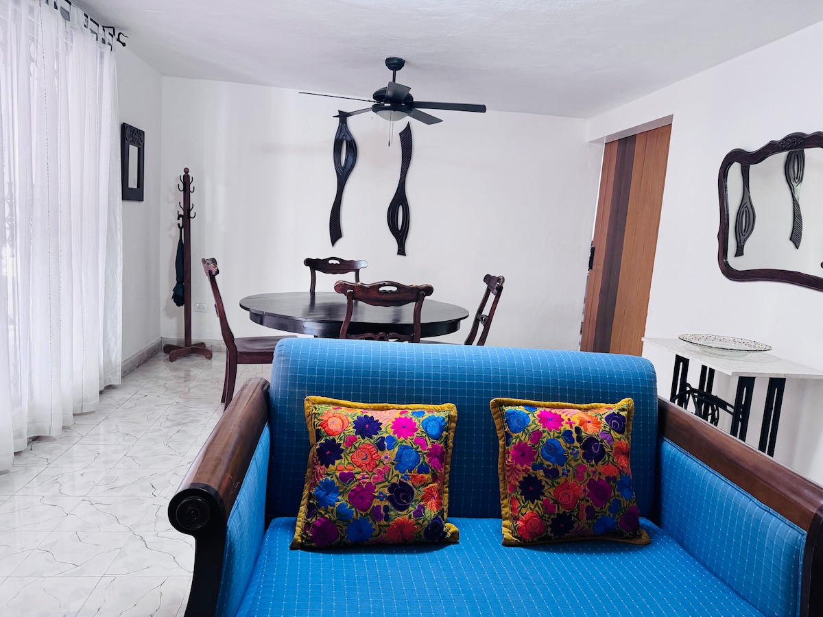 Amplio y cómodo departamento con servicios que te harán sentir como en casa. Está ubicado en una zona muy tranquila que se encuentra a unos pasos del centro de convenciones, restaurantes, bares, plazas comerciales y un supermercado selecto enfrente para que puedas hacer tus compras. Cuenta con cocina equipada, aire acondicionado en las 3 recamaras, TV con fire stick y el WIFI es de 150 Mbps. Tiene un lugar de estacionamiento. El área de sala y comedor solo cuenta con ventiladores no tiene A/C