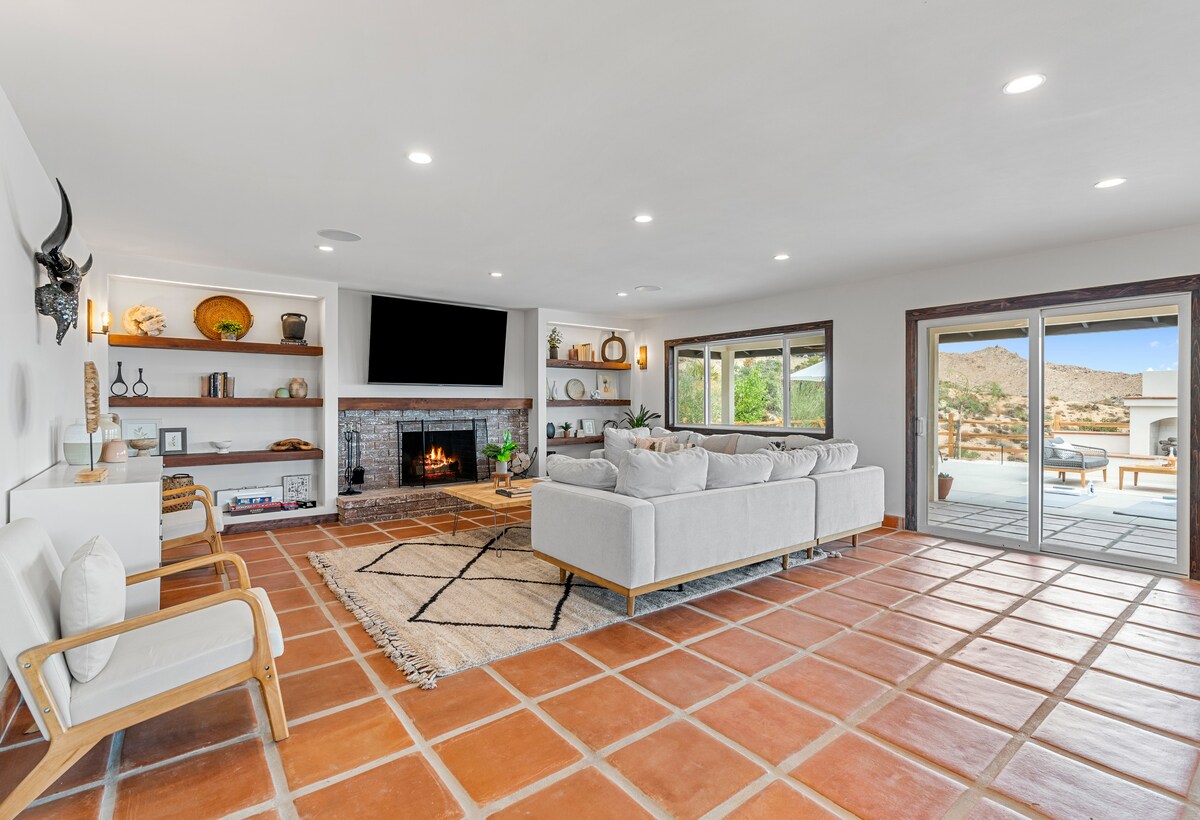 Sol Ridge es una casa única perfectamente ubicada entre Joshua Tree y Palm Springs, lo que la convierte en tu destino ideal en el desierto. La propiedad cuenta con una zona al aire libre con una gran chimenea de hacienda, comedor al aire libre, jacuzzi y piscina de estilo vaquero. El interior de la casa es un gran plano de planta abierta con una nueva cocina de chef diseñada a medida, comedor y área de entretenimiento. El dormitorio principal cuenta con un patio privado con vistas a las rocas y una moderna ducha a ras de suelo. Ambos dormitorios de arriba son amplios.