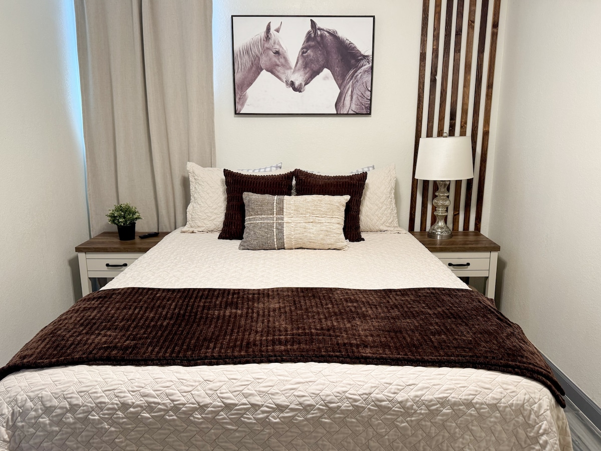 Experiencia tranquila y elegante en tu apartamento de 2 dormitorios con ubicación céntrica. Barrio tranquilo a 5 minutos del centro regional de Onvida Yuma, a 4 minutos de Walmart,Starbucks y restaurantes de comida rápida. También tendrás acceso a la piscina compartida y al patio trasero. La piscina no tiene calefacción, pero está disponible todo el año. Cocina completamente surtida, lavadora y secadora apiladas en la unidad para tu comodidad Este apartamento se encuentra junto a otra propiedad de Airbnb. El apartamento completo es 100% privado. Acceso a la piscina compartida y al patio trasero.