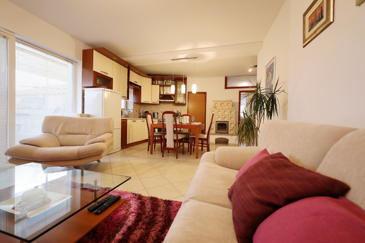The apartment is located on the ground floor of a family house. It has separate entrance and parking space. It's spacious, it has a lot of light. Ideal for two or for a family with children. Walk to the nearest beach takes 20 minutes (2 Kilometers). The old town is 3 kilometers (30 minutes walk). By car drive to the old town in 5 minutes.