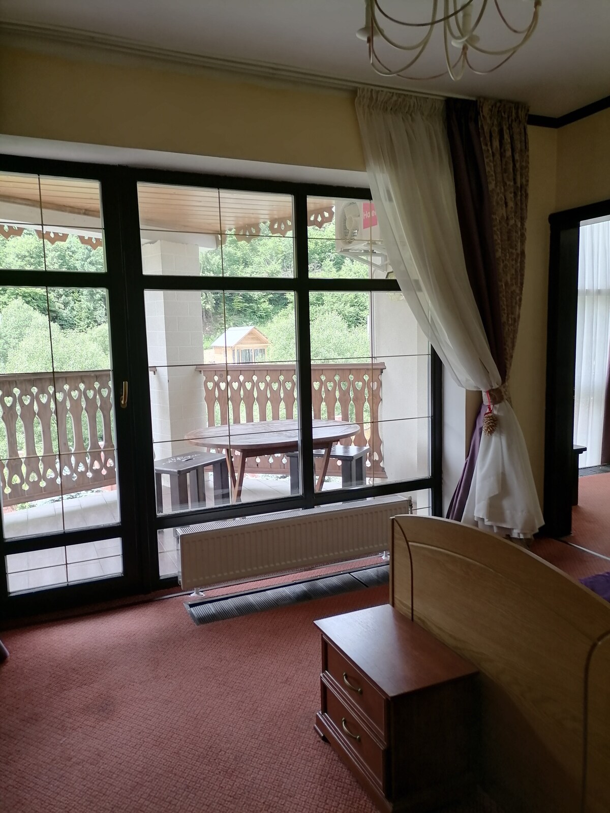 Одноповерховий будинок з 3-а спальнями і 2-а санвузлами. Обладнаний всім необхідним. До ваших послуг у будинку є кухня з необхідною побутовою технікою та посудом. Сучасні санвузли, завжди чисті та свіжі рушники, міні-косметика. Є пральна машина. Спальні оформлені у автентичному карпатському стилі. Зручна веранда-їдальня. Закрита територія з дитячим майданчиком, гойдалкою. Зручна бесідка з мангалом, великим столом для дружньої компанії. Зручне розташування поблизу ліску, у віддаленні від шуму
