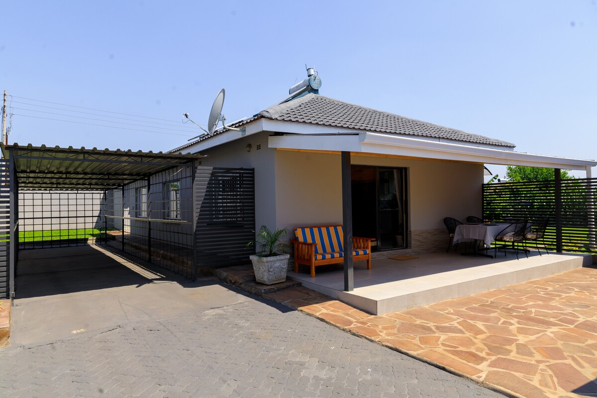 NovaNest – Recharge in Comfort King-size ensuite 🛏️ Outdoor firepit 🔥 Super Wi-Fi & workstation 📶🪑 55” & 43” Smart TVs with DSTV 📺 Fully equipped kitchen 🍳 Solar power & water backup ⚡ Secure parking 🚗 Private, safe neighborhood 🧘 📍 Nearby: 2.2 km from New Mozambik Restaurant