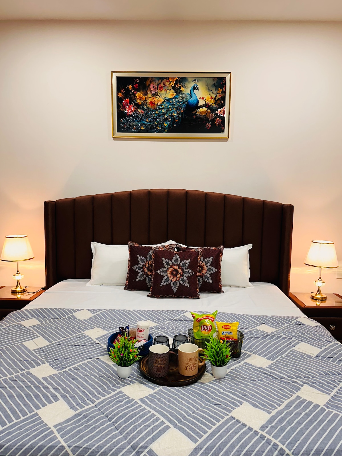 🌟 PREMIUM 3BHK HIGH-RISE APARTMENT FOR BOOKING Enjoy a comfortable, worry-free Japandi theme stay in this fully furnished 3BHK, ideal for families and corporate travelers. Features 3 king-size bedrooms, 3 modern bathrooms, 3 private balconies with amazing views, a spacious living area with 6-seater sofa, 6-seater dining table, 55-inch Smart TV, large refrigerator, fully equipped kitchen with gas stove, washing machine, high-speed Wi-Fi, digital lock, full power backup, and 24/7 security.