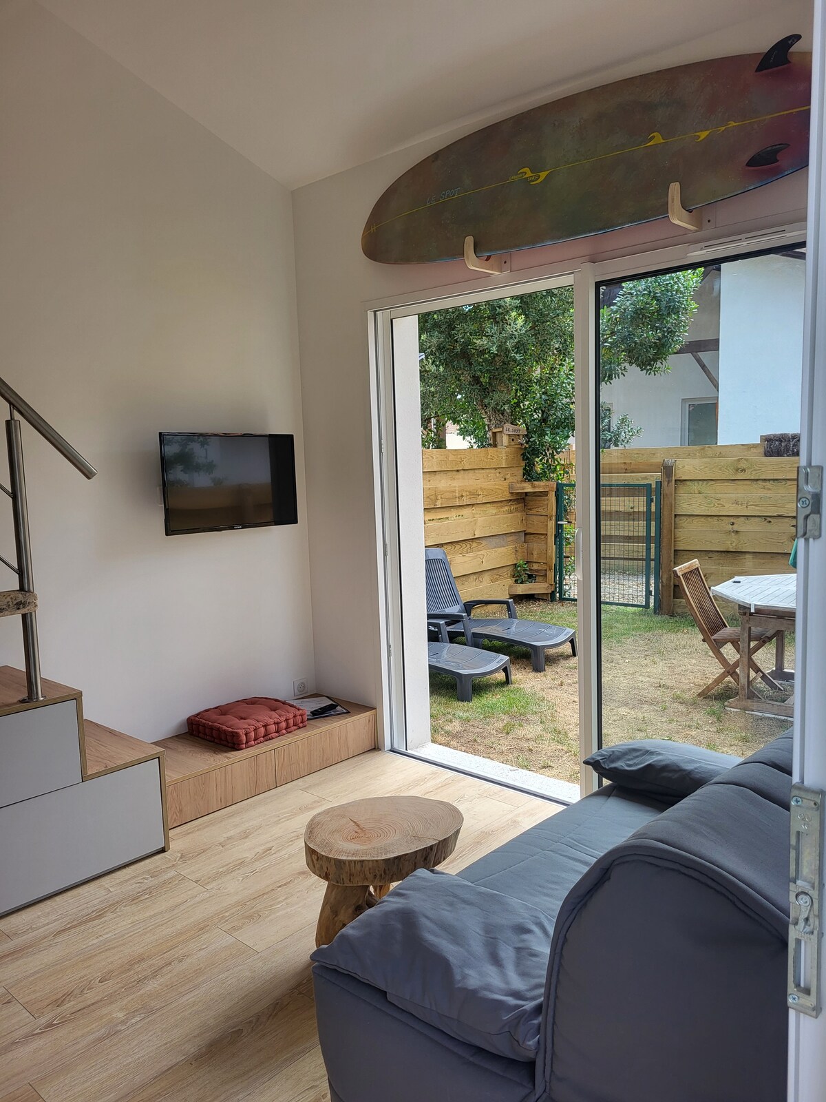 ¡Venga a disfrutar de las puestas de sol en la playa, a pocos minutos a pie de su casa! Tiny house (20 m²) independiente y nueva (construcción 2018), totalmente equipada, wifi, ropa de cama de calidad, acceso privado, terraza de madera, de una sola planta. La playa está muy cerca, el acceso es a través de una calle paralela, ¡por un encantador camino forestal! Ideal para parejas, amantes de la naturaleza, surfistas o padres con niños pequeños (equipo de puericultura disponible). ¡Todo ello con el sonido de las olas!